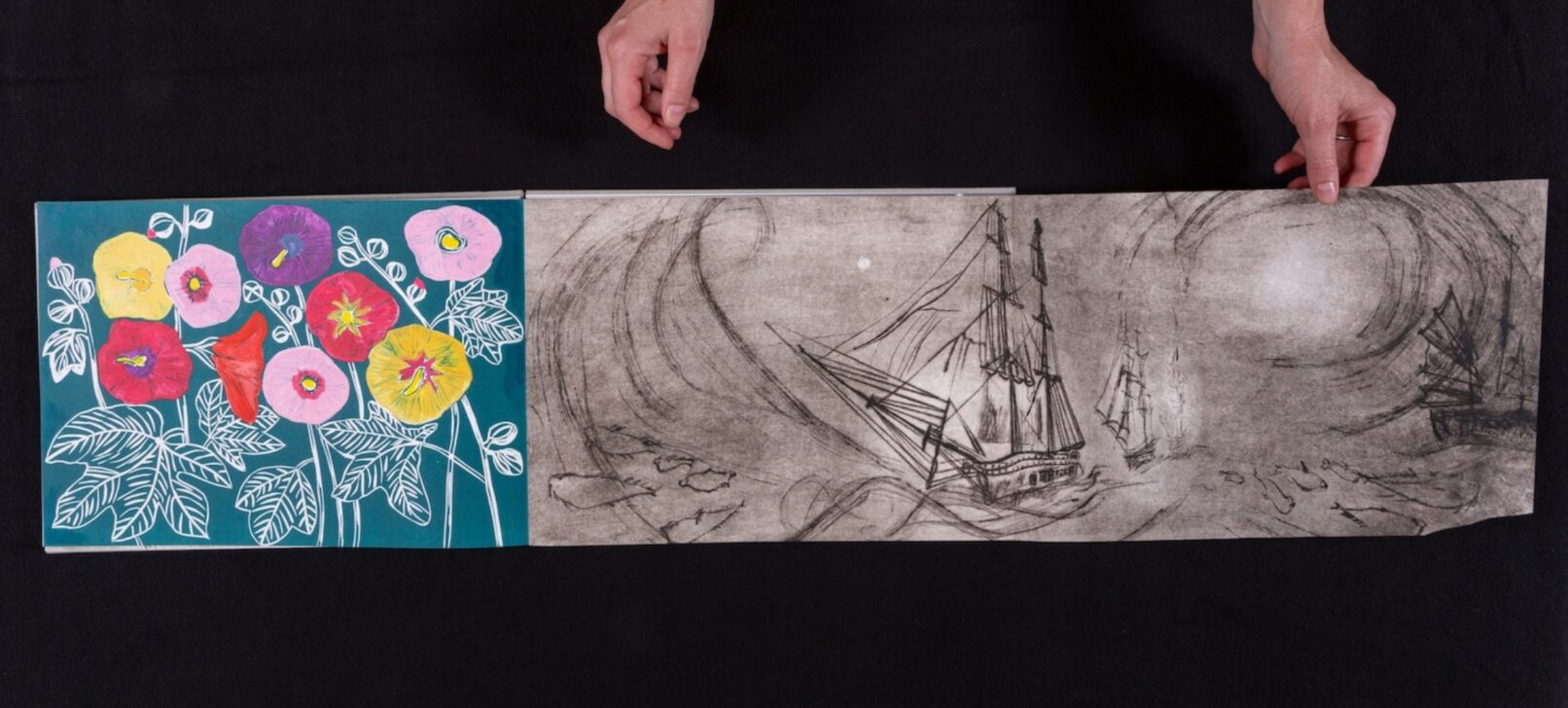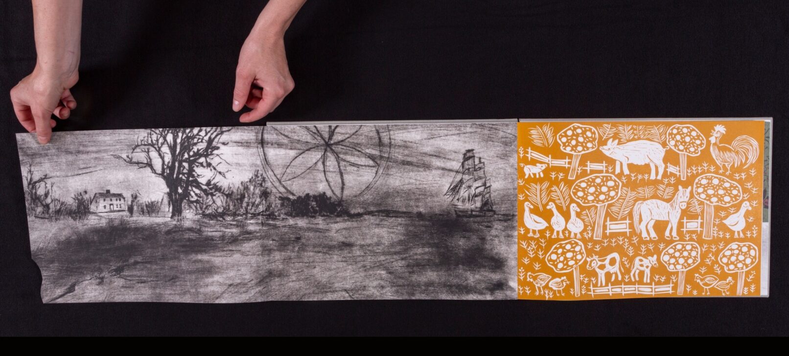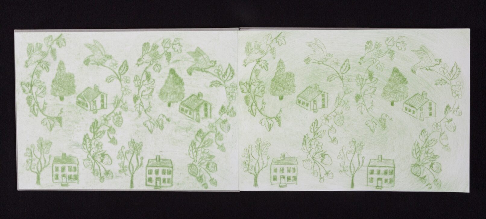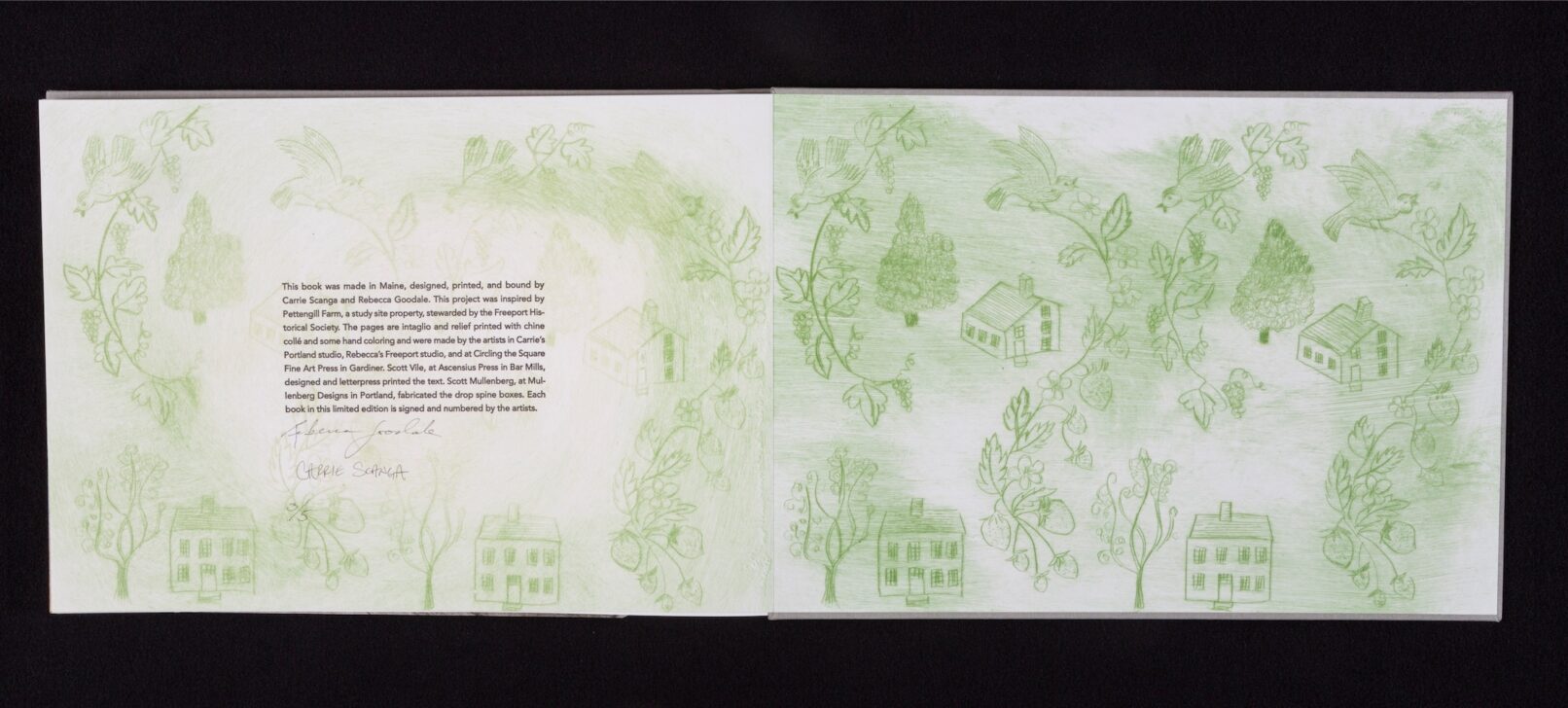 Rebecca and I designed, printed, and bound this book in Maine. They pages are intaglio and relief printed with chine collè and some hand coloring. Scott Vile at Ascensius Press designed and letterpress printed the text. Scott Mullenberg at Mullenberg Designs fabricated the drop spine boxes. Each book in this five edition set is signed and numbered.