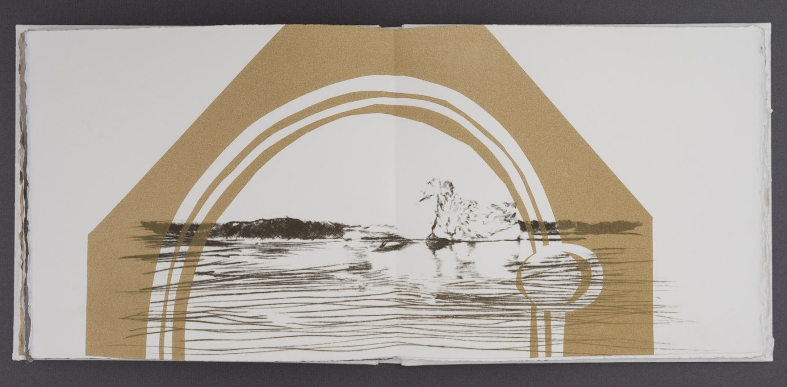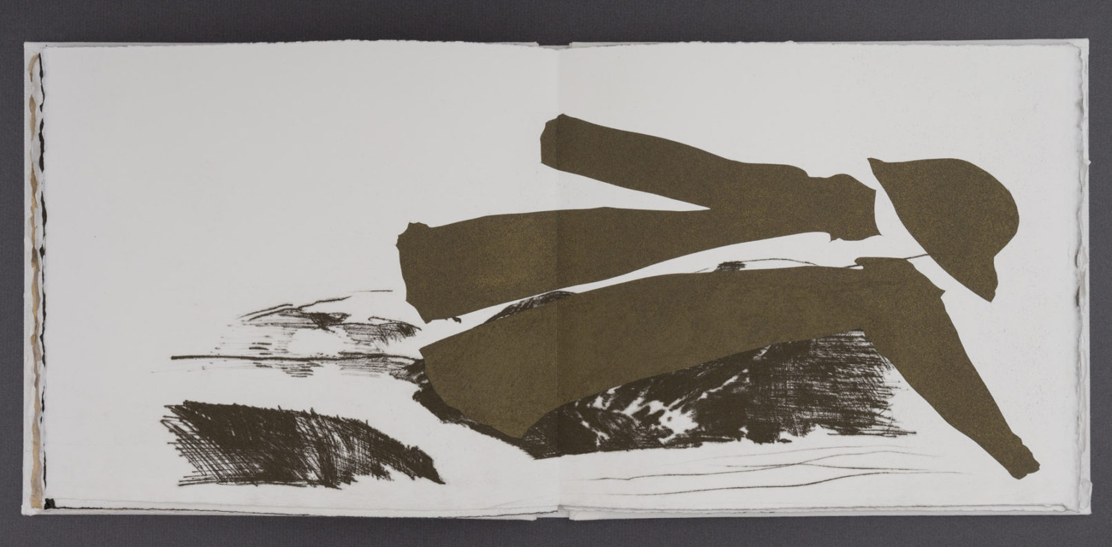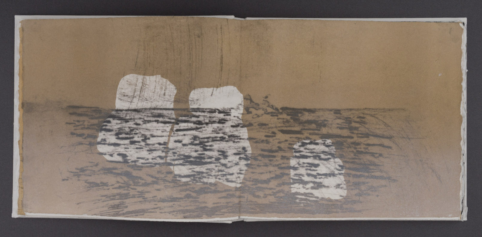 The book’s layered pages combine interpretations of Stafford’s photographs with stenciled silhouettes based on objects she packed for the trip. These overlays obscure and reframe the landscapes, echoing how material culture mediates perception and memory. As I worked, I reflected on my own travels and how I have seen unfamiliar places through personal and cultural filters.