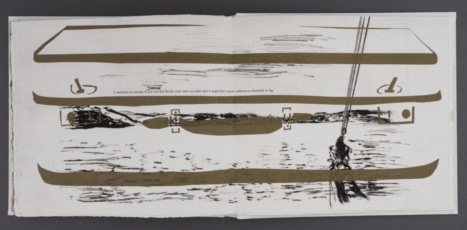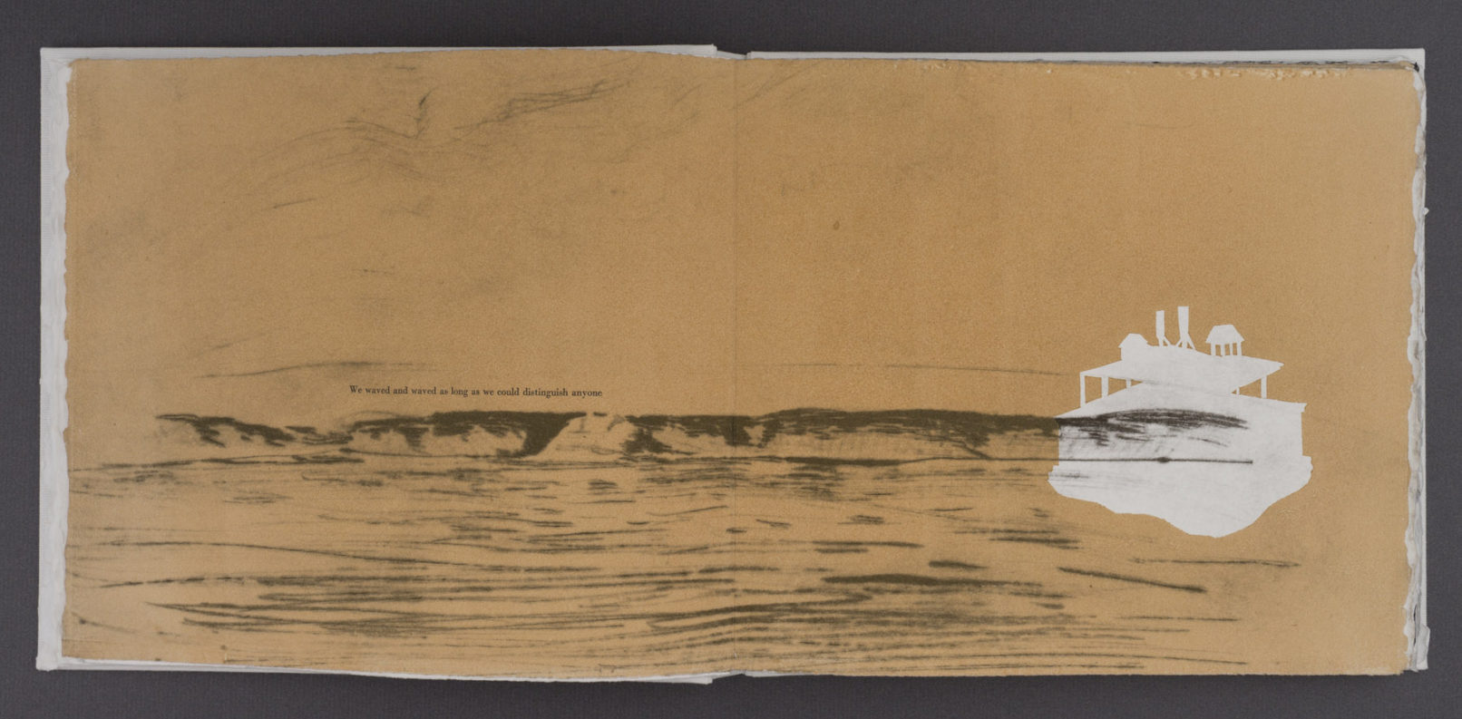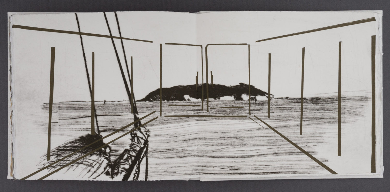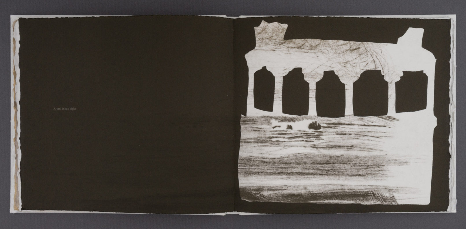 The book’s layered pages combine interpretations of Stafford’s photographs with stenciled silhouettes based on objects she packed for the trip. These overlays obscure and reframe the landscapes, echoing how material culture mediates perception and memory. As I worked, I reflected on my own travels and how I have seen unfamiliar places through personal and cultural filters.
