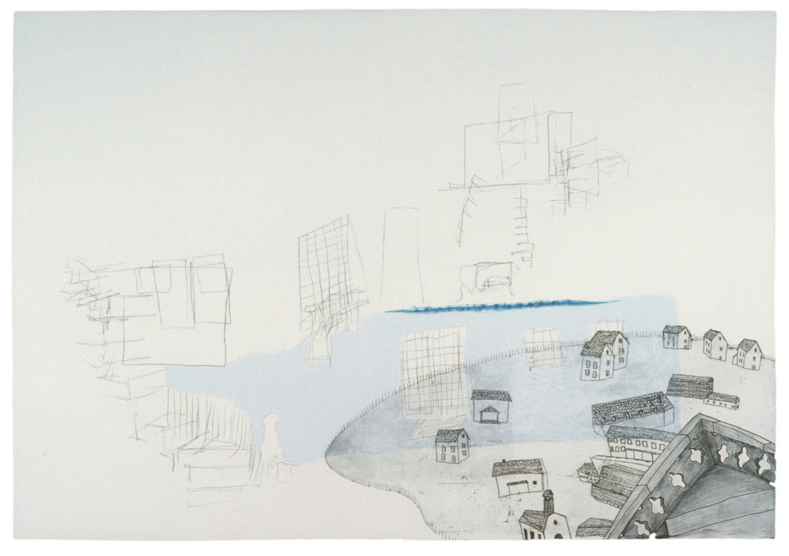 60” x 130”, charcoal, watercolor, collaged etchings, 2006