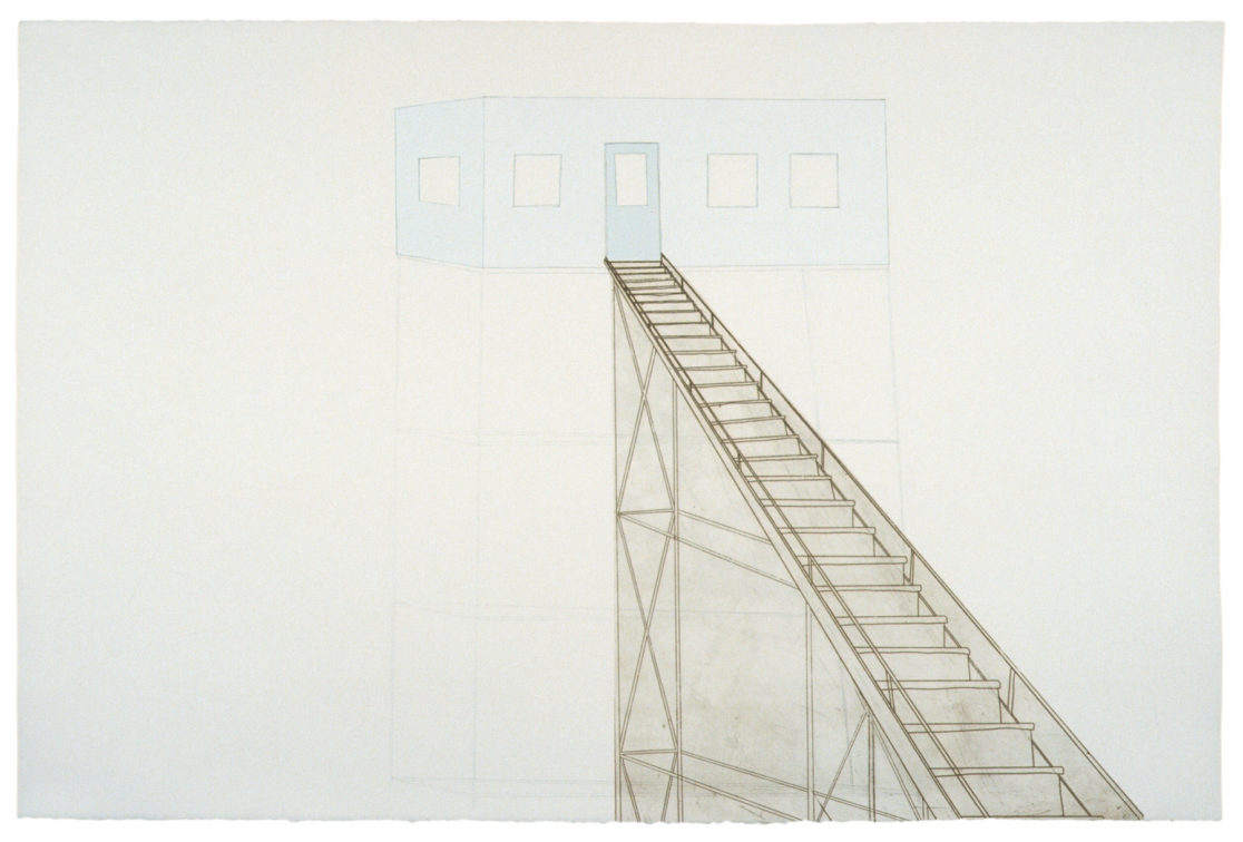 30” x 44”, charcoal, etching, oil pastel on blue paper, 2004